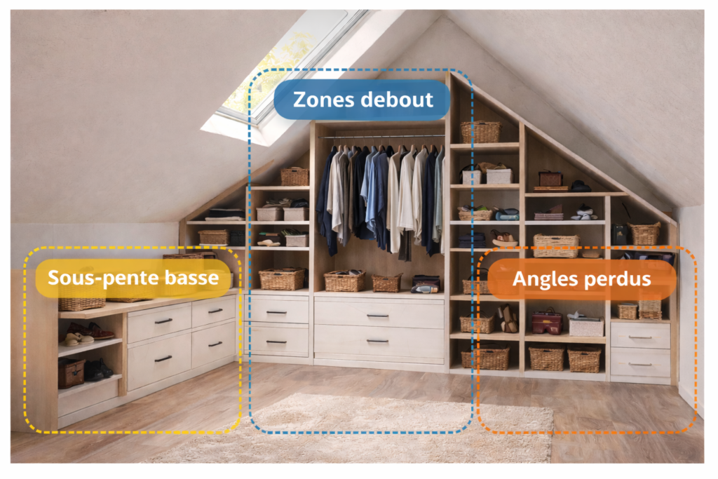 Les angles sous toiture sont souvent inutilisés alors qu’ils offrent un fort potentiel :